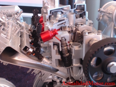 El sistema es simple: una leva que gira como un árbol de levas manda presión de aceite a un actuador hidráulico encargado de abrir la válvula de admisión. A través de una electroválvula gobernada por una centralita se decide si ese aceite va a accionar la apertura de válvula de admisión o por el contrario se va a marchar por el “desagüe” directo al cárter.